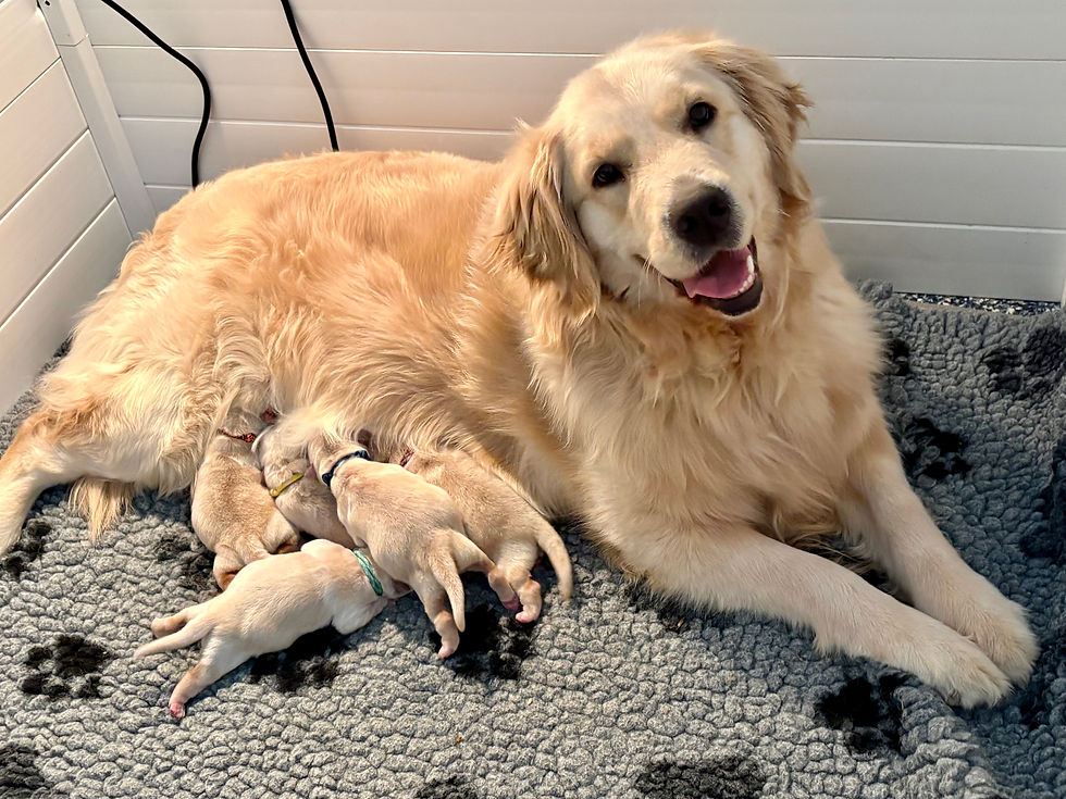 Puppies are 3 days old and Jersey and the babies are healthy and happy. Fun fact: at birth up until about two weeks old, puppies eyes and ears are closed. Their noses, though, are a super power! They use their sense of smell to stay near the "milk bar" and each other. 1-31-25